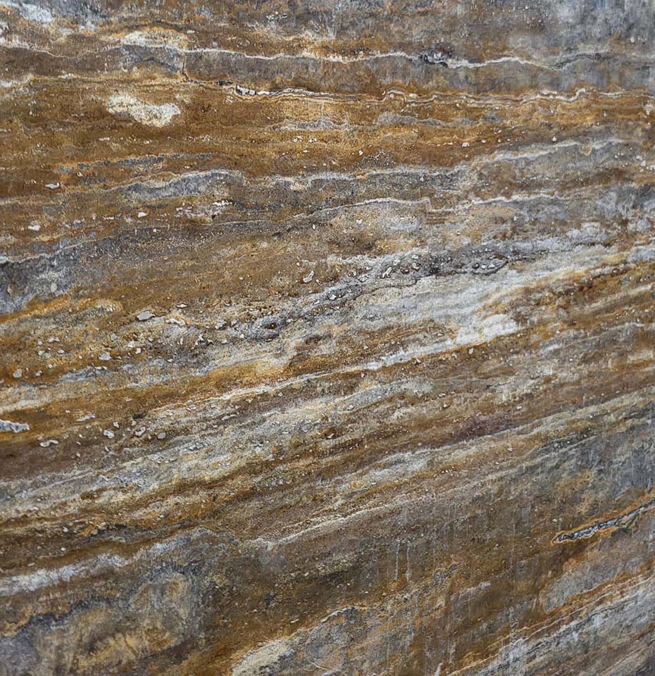 Travertine is a chemogenic sedimentary rock consisting of various deposits of calcium carbonate and is defined by its hollowness, caused by fresh water dissolving deposits and creating pockets of carbon dioxide. It is generally found in deposits in limestone regions and near hot springs. Tones vary between distinctly different beiges and creams ranging to reddish brown. It can have a rustic appearance, depending on the density of the orifices and surface finish, or a modern look, giving travertine marble a more velvety texture and smoother finish.