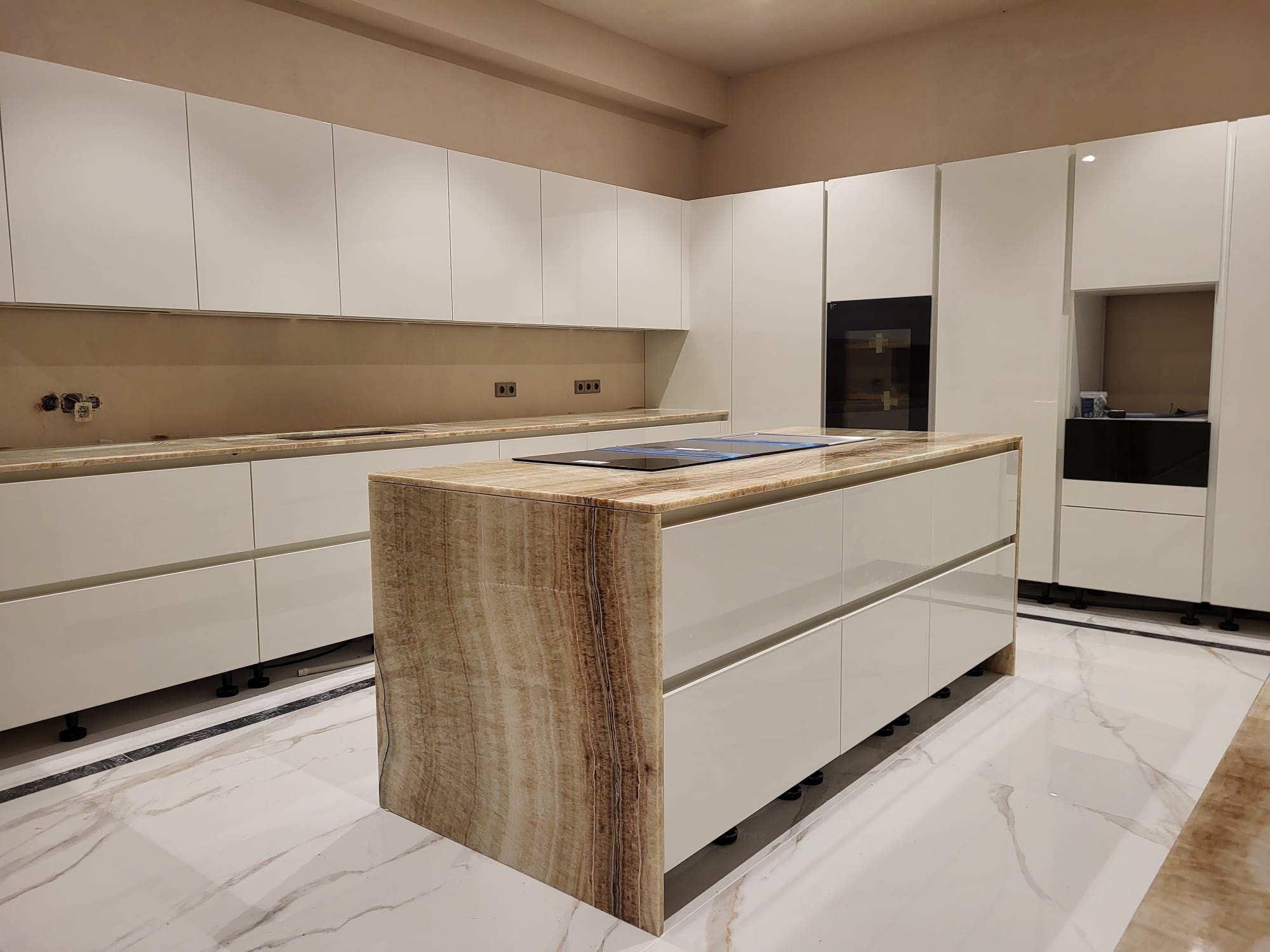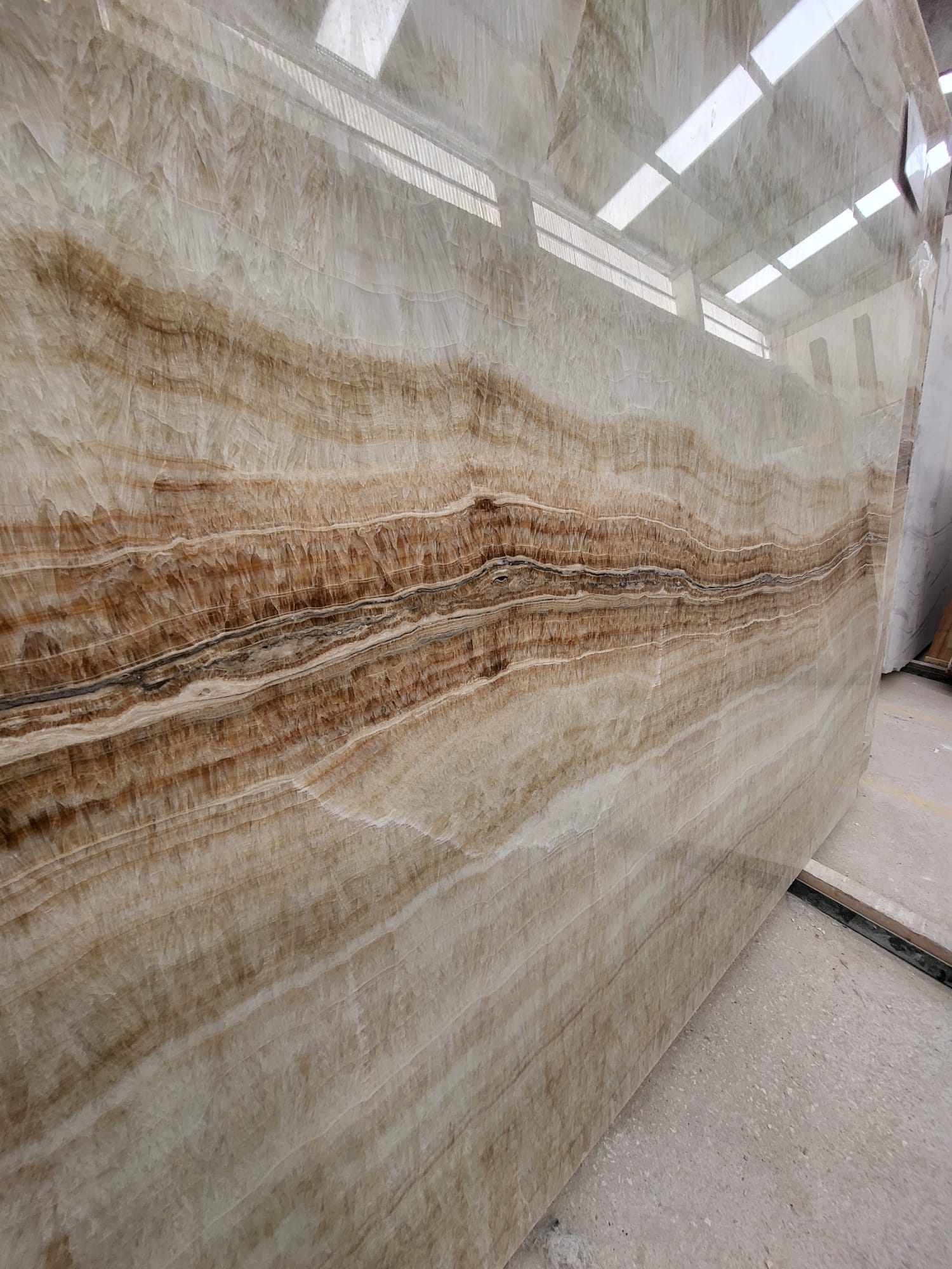 Onyx is a naturally occurring material with unique characteristics. It is mostly used in prominent places or as a decorative element and is often applied on sculpted and retro pieces illuminated to highlight the stone’s depth and mineral structure.